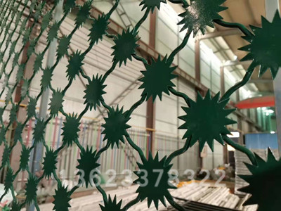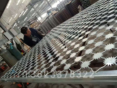 梅花刺片隔離網(wǎng)又叫沖壓刺隔離網(wǎng)、太陽花刺隔離網(wǎng)、梅花刺片護(hù)欄網(wǎng)或梅花刺網(wǎng)。梅花刺片隔離網(wǎng)一般用于監(jiān)獄大門,探監(jiān)門,人員通道兩邊的隔離網(wǎng)、看守所、拘留所、戒毒所、未管所、場區(qū)圍網(wǎng)等。監(jiān)獄梅花刺隔離網(wǎng)是一種常用的監(jiān)獄隔離網(wǎng)。